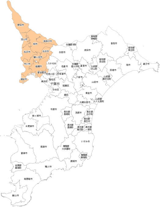 市川市、松戸市、流山市、浦安市、船橋市、習志野市、柏市