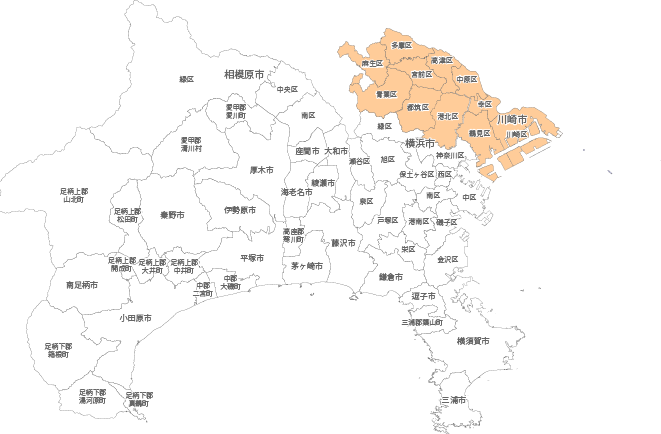 川崎市中原区、川崎市高津区、川崎市多摩区、川崎市宮前区、川崎市麻生区